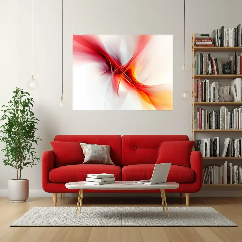 Les teintes vibrantes de rouge et d’orange symbolisent l’énergie naissante et la promesse d’un nouveau jour, tandis que les lignes fluides et dynamiques évoquent le mouvement perpétuel et la transformation.