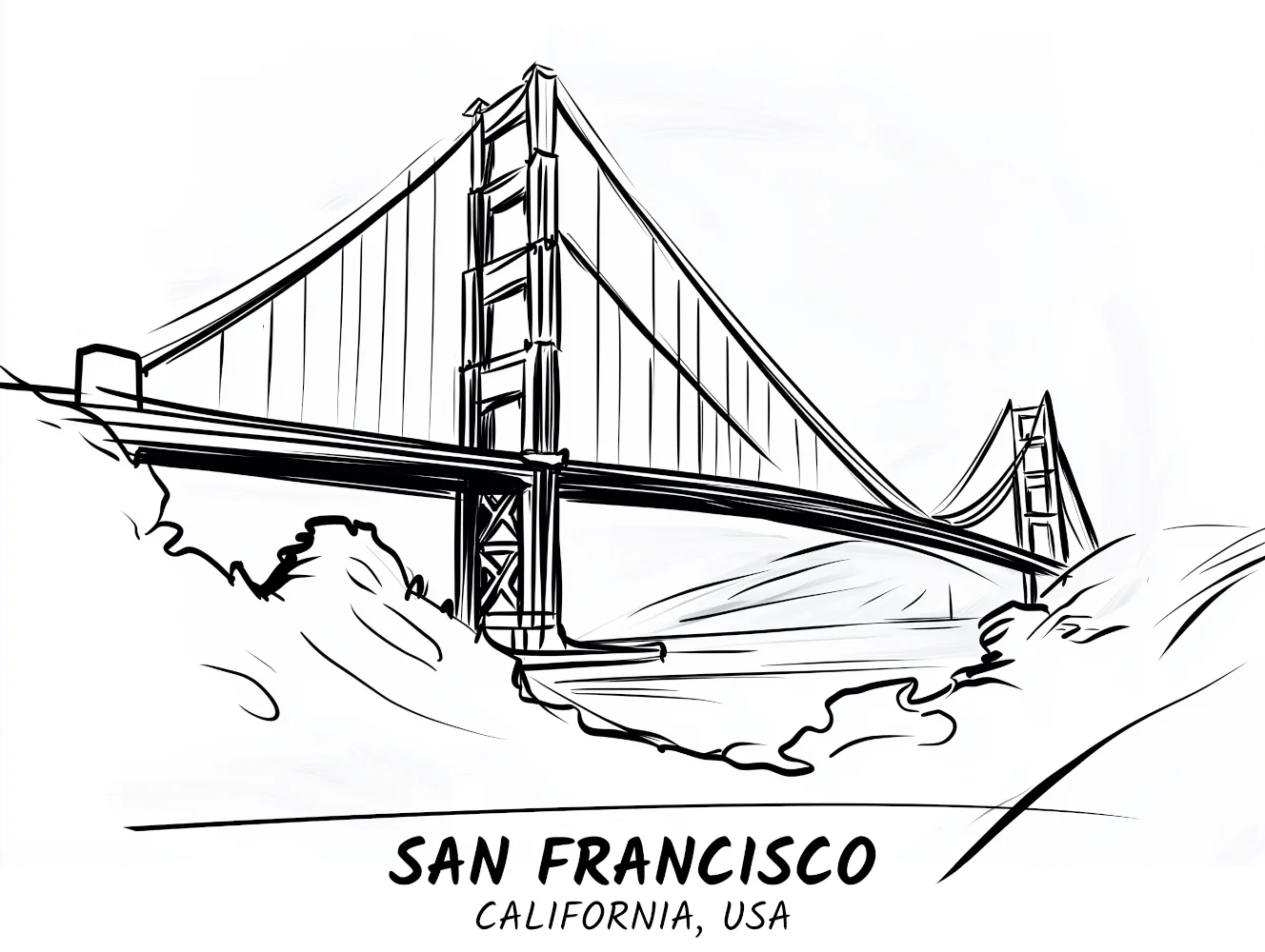 Cette œuvre, intitulée « Le Golden Gate : Gardien de la Baie », capture l’essence intemporelle du célèbre Golden Gate Bridge de San Francisco, en Californie. L’artiste utilise des lignes épurées et des contrastes marqués pour mettre en valeur la structure imposante du pont.